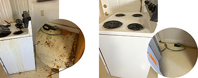 Or kitchens? Another specialty of ours. Whatever the mess, however it got that way is no matter. We come in and make it as clean as it can possibly be and that's a fact! Click the thumbnails to see dramatic before/after pic blowups.